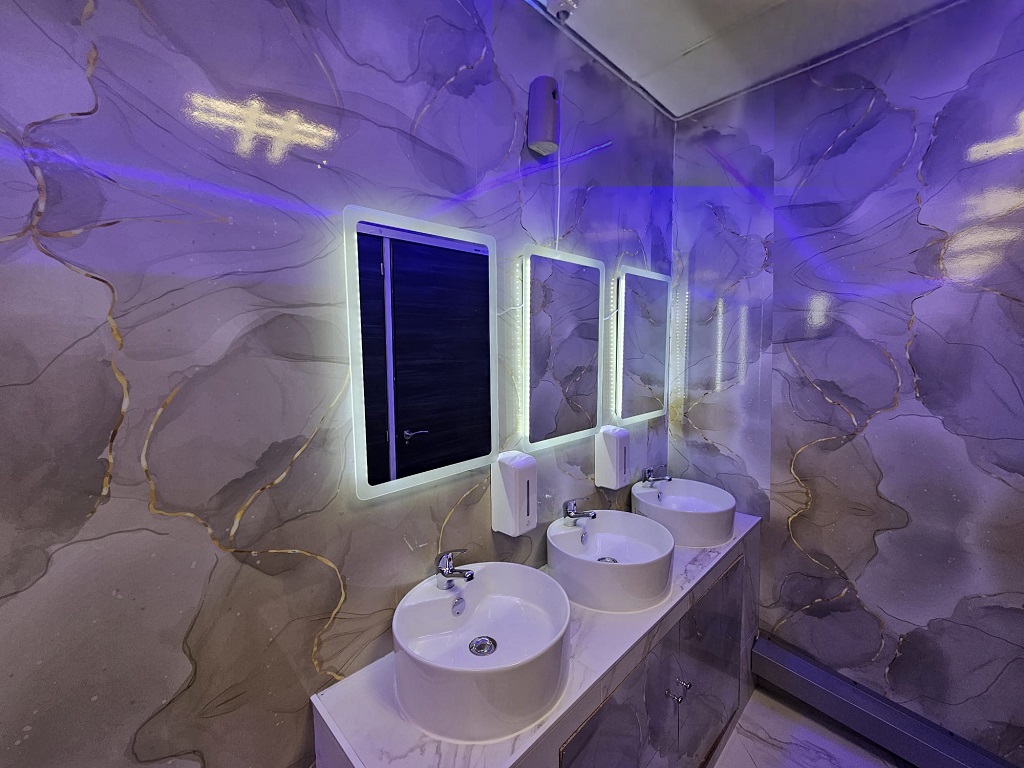 Disponemos de baños portátiles premium y aseos VIP con acabados de alta calidad, lavamanos, iluminación y ventilación natural.